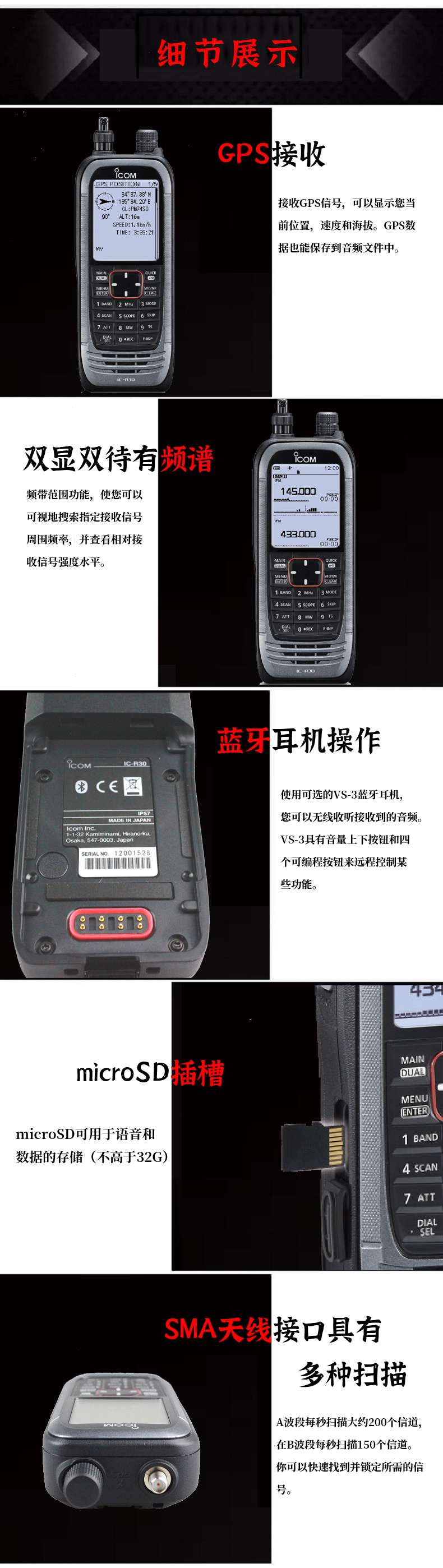 IC-R30雙顯雙待  雙重存儲(chǔ)  接收和解碼各種數(shù)字協(xié)議