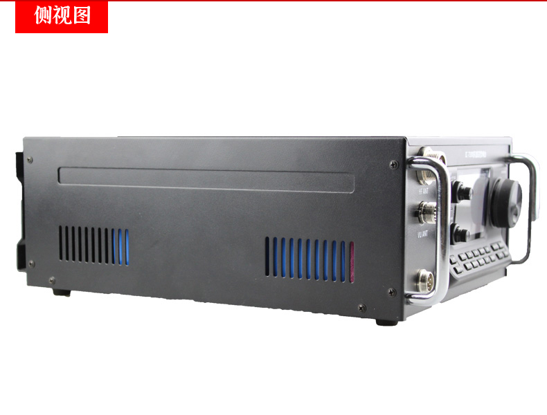多頻段全模式電臺,觸摸屏幕,機身分離 短波電臺,內置天調,鋰電和外置2.4m短波天線。短波,V/U雙天線接口方便多頻段背負,固定使用。