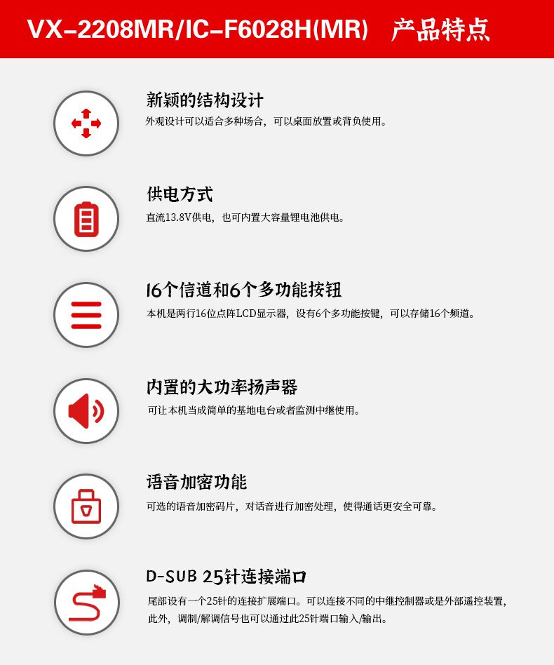 • 產品型號:IC-F6028H(MR) VX-2208MR IC-F6028H(MR)