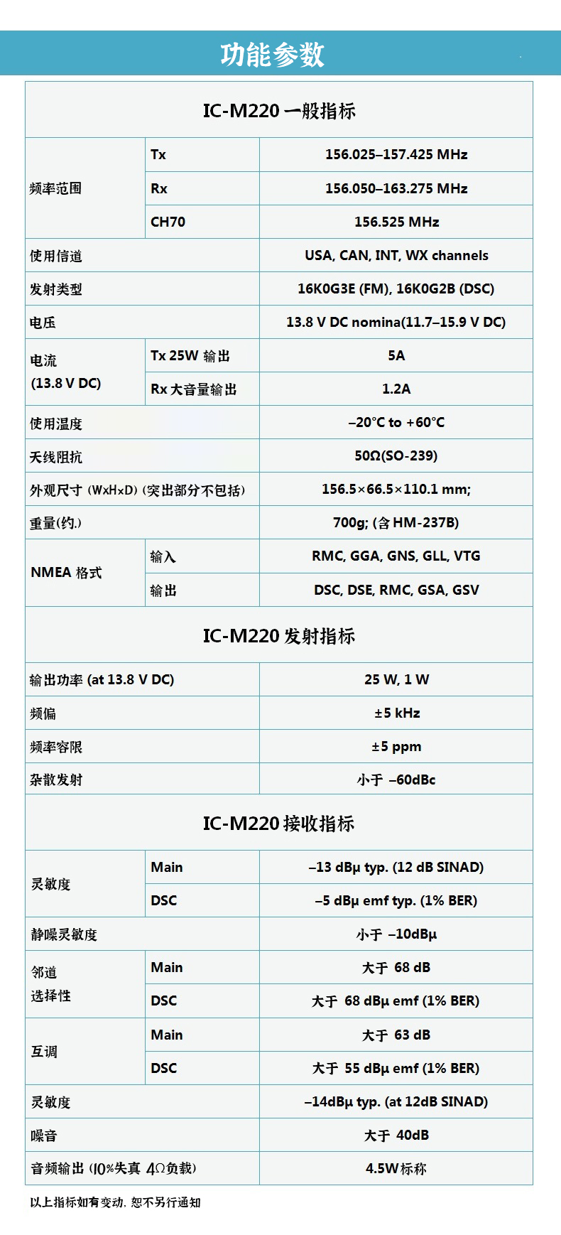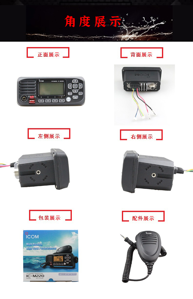 海事船用車載電臺7級防水,一米水深可防止30分鐘。內置天氣預報信道。一鍵進入16信道緊急呼叫。話筒可拆卸。 核準證代碼CMIIT ID:2019FJ6375