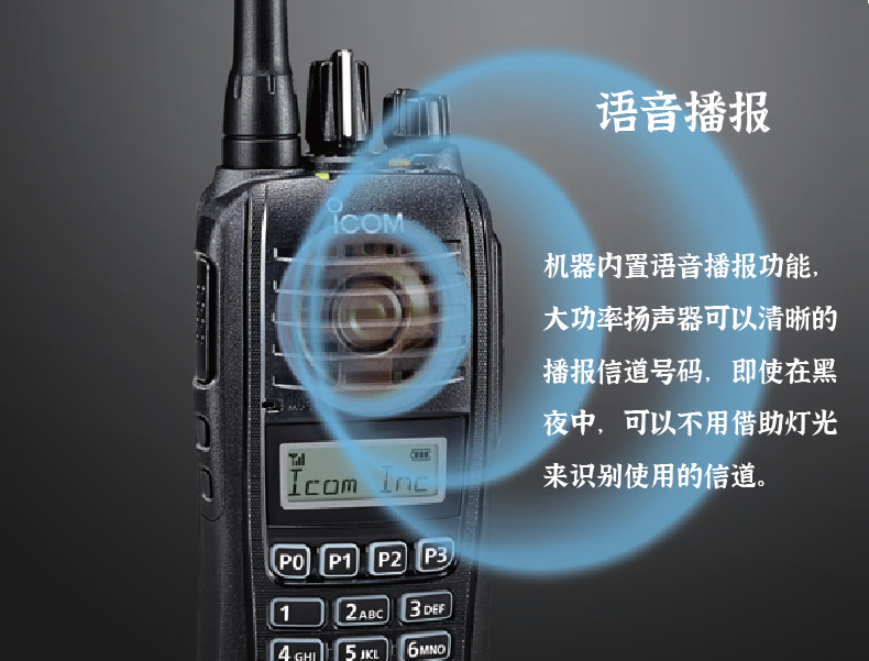 機器內(nèi)置語音播報功能,大功率揚聲器可以清晰的播報信道號碼,即使在黑夜中,可以不用借助燈光來識別使用的信道。