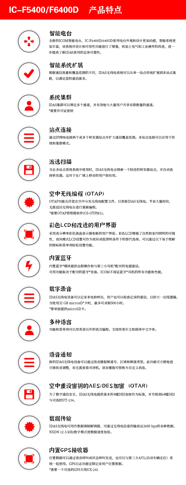 ICOM 艾可慕IC-F6400D數字模擬車載電臺移動電臺數傳電臺中文顯示藍牙電臺