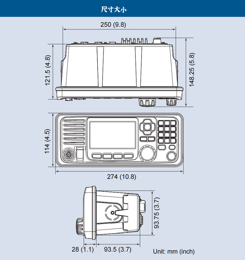 8級防水設計,不怕雨淋鹽霧。 大屏幕,操作界面,簡單,容易上手。 可以接收弱信號,提高接收能力。 內置DSC,使用更安心。