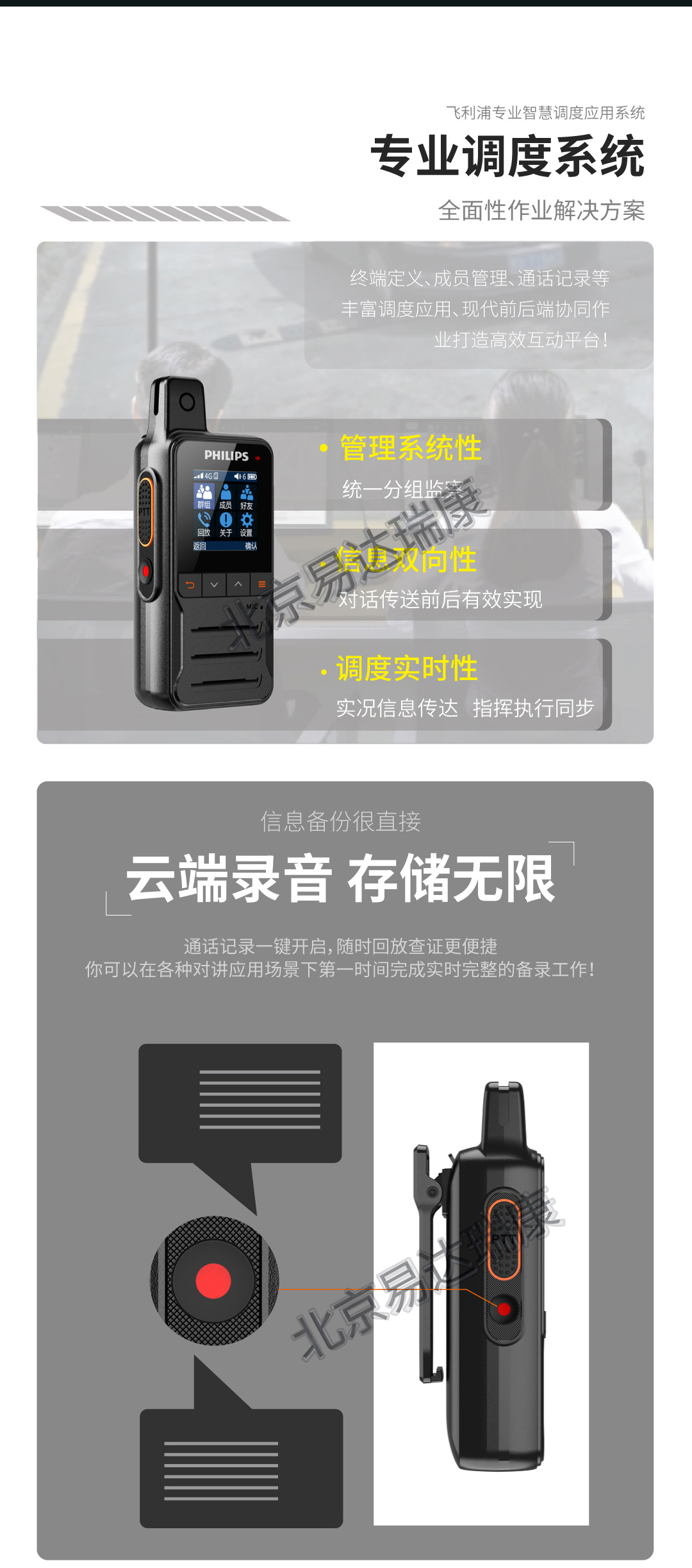 雙卡雙待/全國/公網對講/云端錄音/智慧平臺高效管理/快捷PTT呼叫/強勁續航/TYPE-C直充/可拆卸電池/