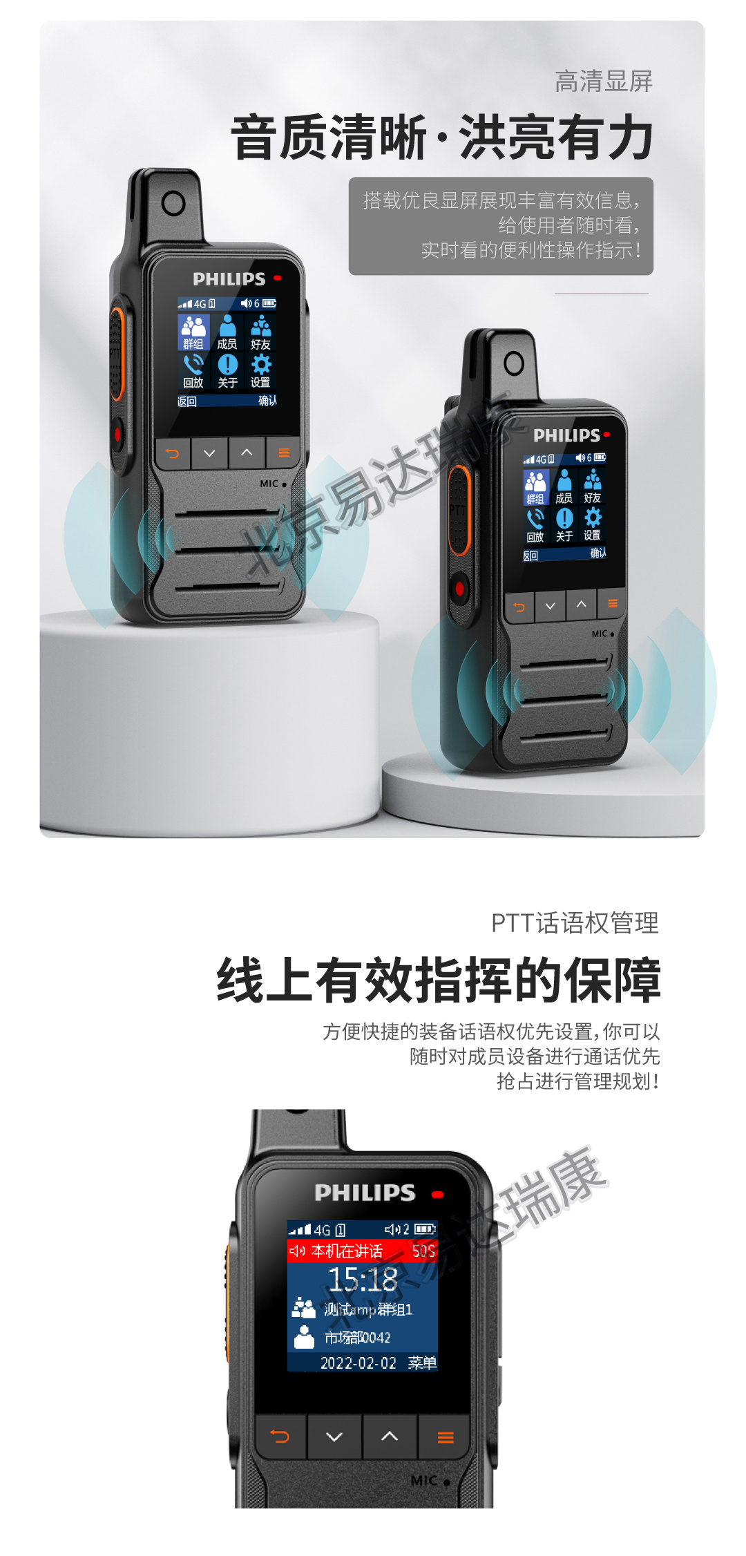 飛利浦公網智慧語音終端: 雙卡雙待/全國/公網對講/云端錄音/智慧平臺高效管理/快捷PTT呼叫/強勁續航/TYPE-C直充/可拆卸電池/ 續航無憂/智能降噪/對講