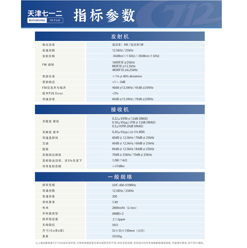 天津712數字對講機TR-P130數字對講機數字模擬對講機DMR防護IP68